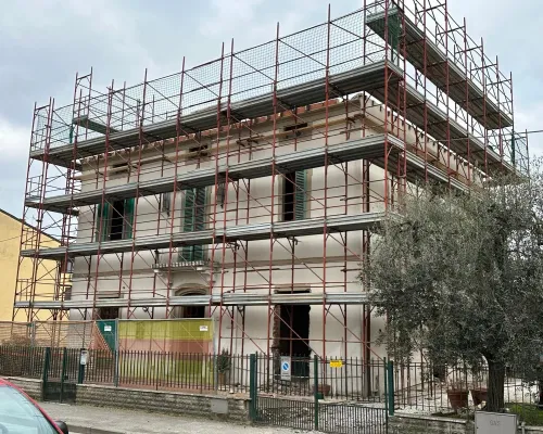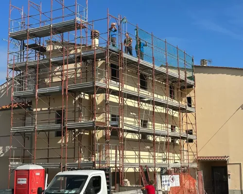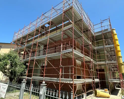 Ponteggi a Norma di Legge. Garantiamo la massima sicurezza in ogni fase, con materiali certificati e montaggi professionali.